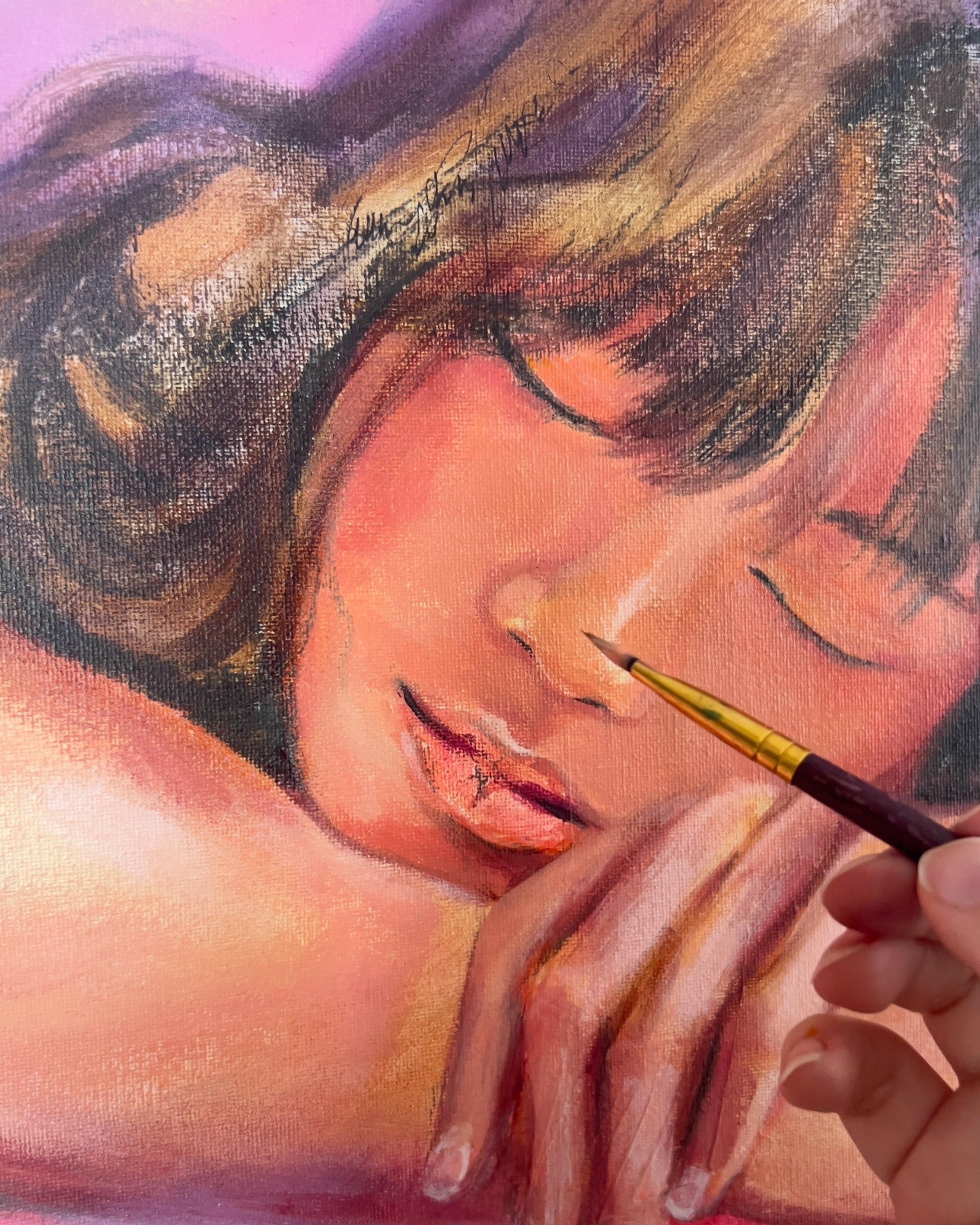 Ich male mit offenen Fenstern, Musik im Hintergrund und dem Licht, das durchs Fenster fällt. Manchmal bis spät in die Nacht, manchmal mit einer Decke über den Schultern und Kuschelsocken.